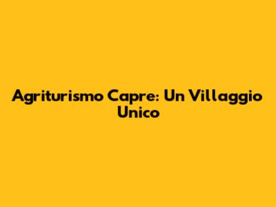 Agriturismo Capre: Un Villaggio Unico