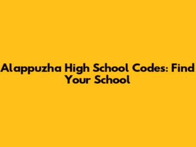 Alappuzha High School Codes: Find Your School