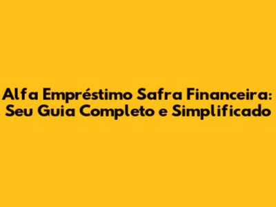O Que é Alfa Empréstimo Safra Financeira?