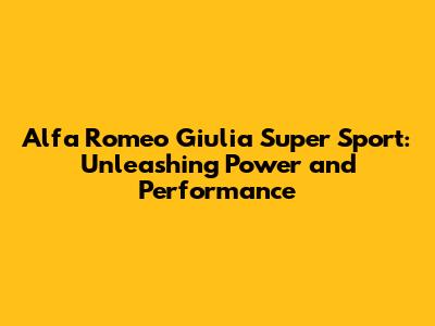 Alfa Romeo Giulia Super Sport: Power And Performance