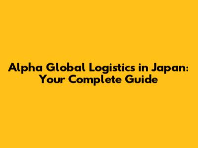 Alpha Global Logistics In Japan: Your Complete Guide