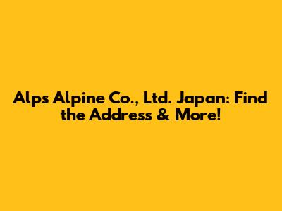 Alps Alpine Japan: Find The Address & More!