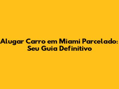 Alugar Carro Em Miami Parcelado: Guia Completo E Dicas Essenciais