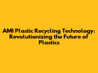 AMI Plastic Recycling: Innovative Tech & Solutions