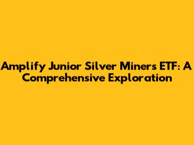 Hey guys! Today, we're diving deep into the Amplify Junior Silver Miners ETF (SILJ). If you're looking to add some silver exposure to your portfolio, especially focusing on the smaller, potentially high-growth silver mining companies, this ETF might be right up your alley. We'll break down everything you need to know, from its holdings and strategy to its performance and potential risks. Let's get started!