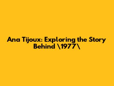 Hey guys! Ever heard that killer track "1977" by Ana Tijoux and wondered what's the story behind it? Well, buckle up, because we're diving deep into the world of this iconic song, exploring its roots, impact, and why it still resonates with so many of us today.