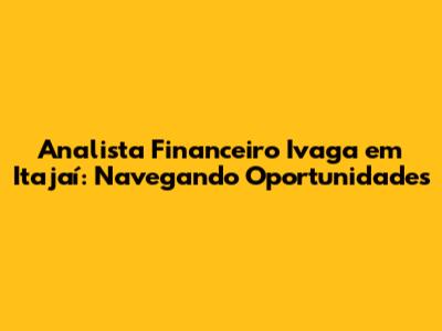 Analista Financeiro Ivaga Em Itajaí: Oportunidades