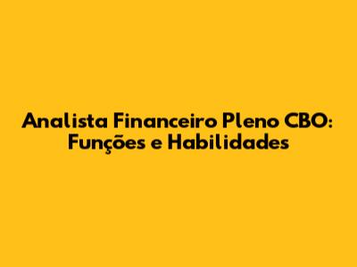 Analista Financeiro Pleno CBO: Funções E Habilidades
