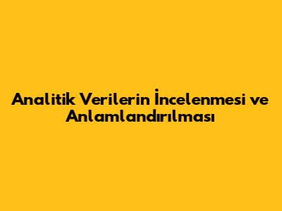 Analitik Verilerin İncelenmesi Ve Anlamlandırılması