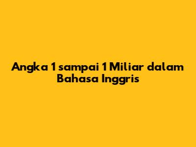 Angka 1 Sampai 1 Miliar Dalam Bahasa Inggris