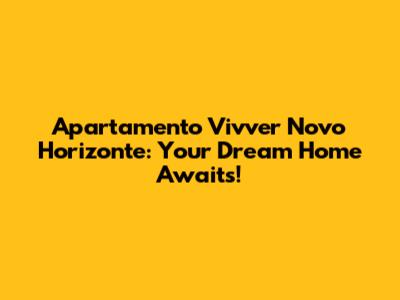 Hey there, future homeowner or savvy investor! Are you on the hunt for a fantastic new place to call home, specifically in the vibrant Novo Horizonte area? Well, buckle up, because we're diving deep into Apartamento Vivver Novo Horizonte, and trust me, guys, this could be the perfect spot for you. We'll explore everything from the sweet location and killer amenities to the nitty-gritty of prices and floor plans. Get ready to have all your questions answered, and maybe, just maybe, you'll find your dream apartment!