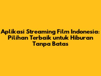 Aplikasi Streaming Film Indonesia: Pilihan Terbaik Untuk Hiburan Tanpa Batas