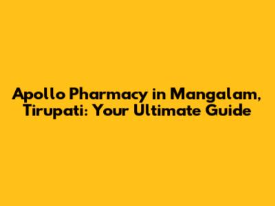 Apollo Pharmacy In Mangalam, Tirupati: A Comprehensive Guide