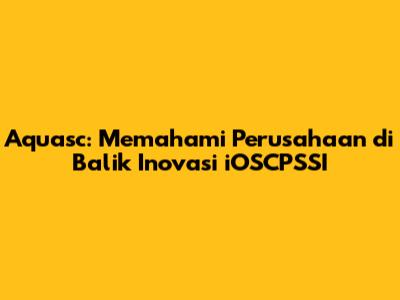 Aquasc: Perusahaan Di Balik Inovasi IOSCPSSI