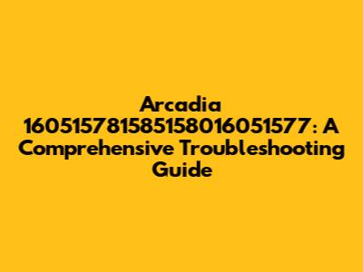 Arcadia 160515781585158016051577: Troubleshooting Guide