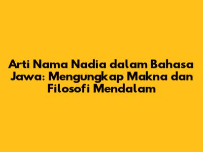 Arti nama Nadia dalam bahasa Jawa memiliki daya tarik tersendiri, guys! Nama ini tidak hanya indah didengar, tetapi juga menyimpan makna dan filosofi yang kaya. Bagi kalian yang penasaran dengan makna nama Nadia menurut Jawa atau ingin tahu lebih dalam tentang Nadia dalam bahasa Jawa, mari kita telusuri bersama-sama!