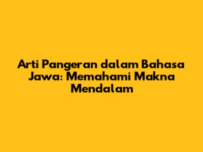 Arti Pangeran Dalam Bahasa Jawa