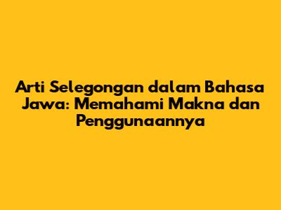 Arti selegongan dalam bahasa Jawa adalah frasa yang mungkin belum familiar bagi sebagian orang. Namun, bagi mereka yang akrab dengan budaya Jawa, istilah ini bisa jadi sudah tidak asing lagi. Nah, dalam artikel ini, kita akan membahas secara mendalam tentang apa itu selegongan, makna yang terkandung di dalamnya, serta bagaimana penggunaannya dalam konteks bahasa dan budaya Jawa. Yuk, simak penjelasannya!