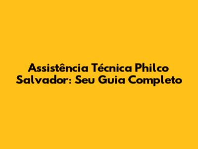 Assistência Técnica Philco Em Salvador: Seu Guia Completo
