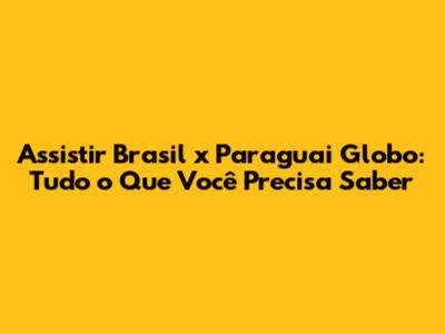 Assistir Brasil X Paraguai Ao Vivo Na Globo: Guia Completo