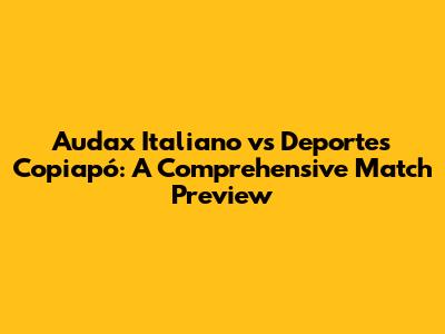 Alright, football fanatics, get ready! We're diving deep into the upcoming clash between Audax Italiano and Deportes Copiapó. This isn't just any match; it's a battle of wills, tactics, and hopefully, some stunning goals. We'll break down everything you need to know, from team form to potential game-changers, to give you the ultimate preview. So, grab your snacks, settle in, and let's dissect this exciting encounter!