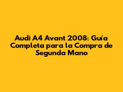 Audi A4 Avant 2008: Guía Completa De Compraventa