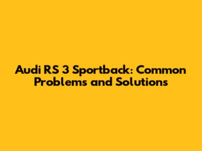 Audi RS 3 Sportback: Troubleshooting & Solutions