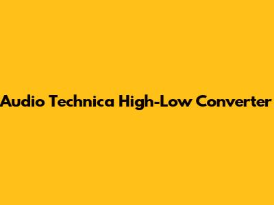 Choosing the Right Audio Technica High-Low Converter