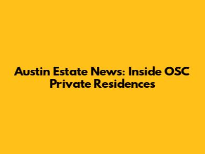 So, what’s the latest buzz surrounding OSC Private Residences? Let’s dive into some recent news and updates that have caught the attention of Austin’s real estate enthusiasts. From new sales records to community events, there's always something exciting happening at OSC.