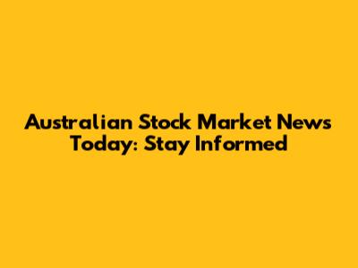 Australian Stock Market News Today: Stay Informed