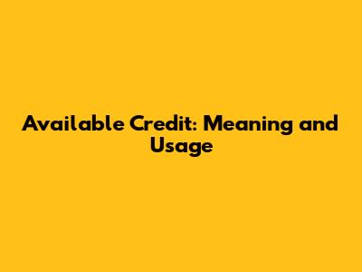 Available Credit: Meaning And Usage