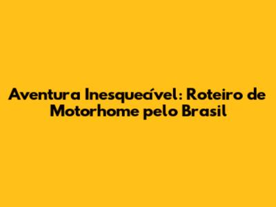 Aventura Inesquecível: Roteiro De Motorhome Pelo Brasil
