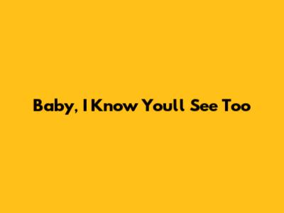 Baby, I Know You'll See Too