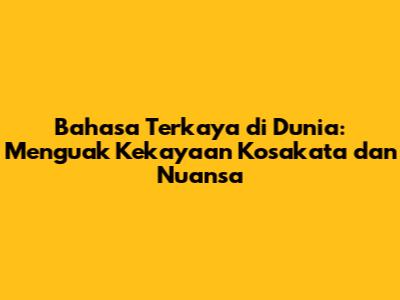 Apa yang Membuat Sebuah Bahasa Dianggap 'Kaya'?