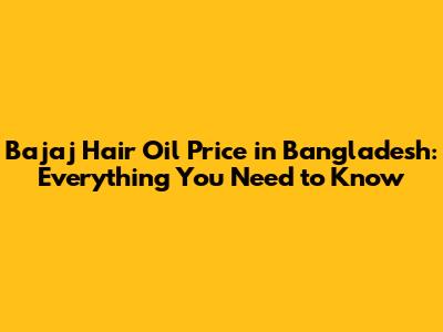 Bajaj Hair Oil Price In Bangladesh: A Comprehensive Guide