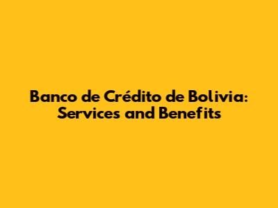 Banco De Crédito De Bolivia: Services And Benefits