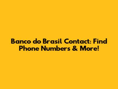 Banco Do Brasil Contact: Find Phone Numbers & More!