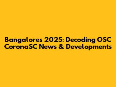Bangalore's 2025: Decoding OSC CoronaSC News & Developments
