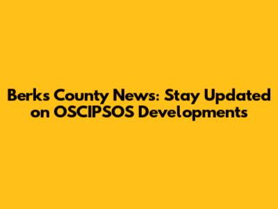 Berks County News: Stay Updated On OSCIPSOS Developments