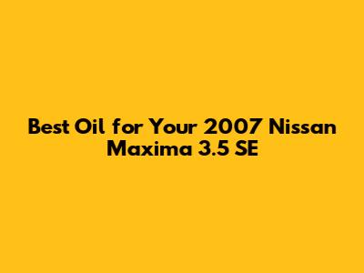 Recommended Oil Types for 2007 Nissan Maxima 3.5 SE