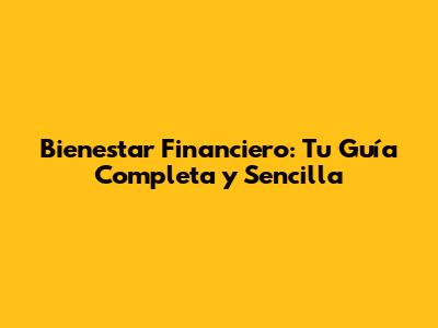 Bienestar Financiero: Tu Guía Completa Y Sencilla