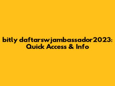 Bitly Daftarswjambassador2023: Quick Access & Info