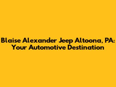 Hey guys! Looking for a reliable and trustworthy Jeep dealership in Altoona, PA? Look no further! Blaise Alexander Jeep is your go-to spot for all things Jeep, whether you're hunting for a new ride, need top-notch service, or just want to explore the world of Jeep. We're not just a dealership; we're a part of the Altoona community, committed to providing you with an exceptional car-buying and ownership experience. Let's dive into what makes Blaise Alexander Jeep the premier choice for Jeep enthusiasts in and around Altoona.