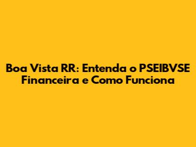 Boa Vista RR: Entenda O PSEIBVSE Financeira E Como Funciona