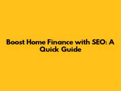 Boost Home Finance With SEO: A Quick Guide