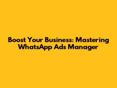 Boost Your Business: Mastering WhatsApp Ads Manager