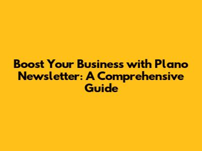 Boost Your Business With Plano Newsletter: A Comprehensive Guide