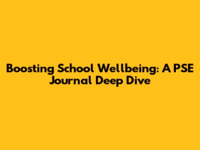 Boosting School Wellbeing: A PSE Journal Deep Dive
