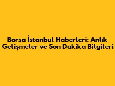 Anlık Borsa İstanbul Haberleri ve Gelişmeleri