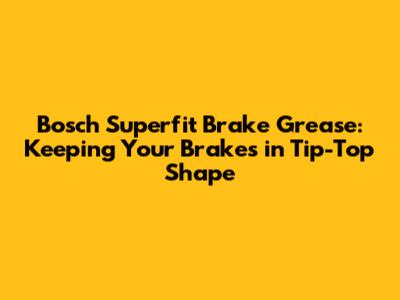 Hey guys, let's talk brakes! They're kinda important, right? And keeping them working smoothly and safely is a must. One of the unsung heroes in brake maintenance is Bosch Superfit Brake Grease. If you're looking to keep your brakes performing at their best, then you've come to the right place. We're going to dive deep into what makes this grease so special, why you need it, and how to use it like a pro. Forget squeaky brakes and uneven wear; with Bosch Superfit, you're on the road to a smoother, safer ride. Let's get started!
